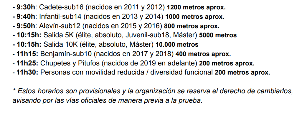 HORARIOS - 10K VALLADOLID 3ª CARRERA DE LAS FAMILIAS