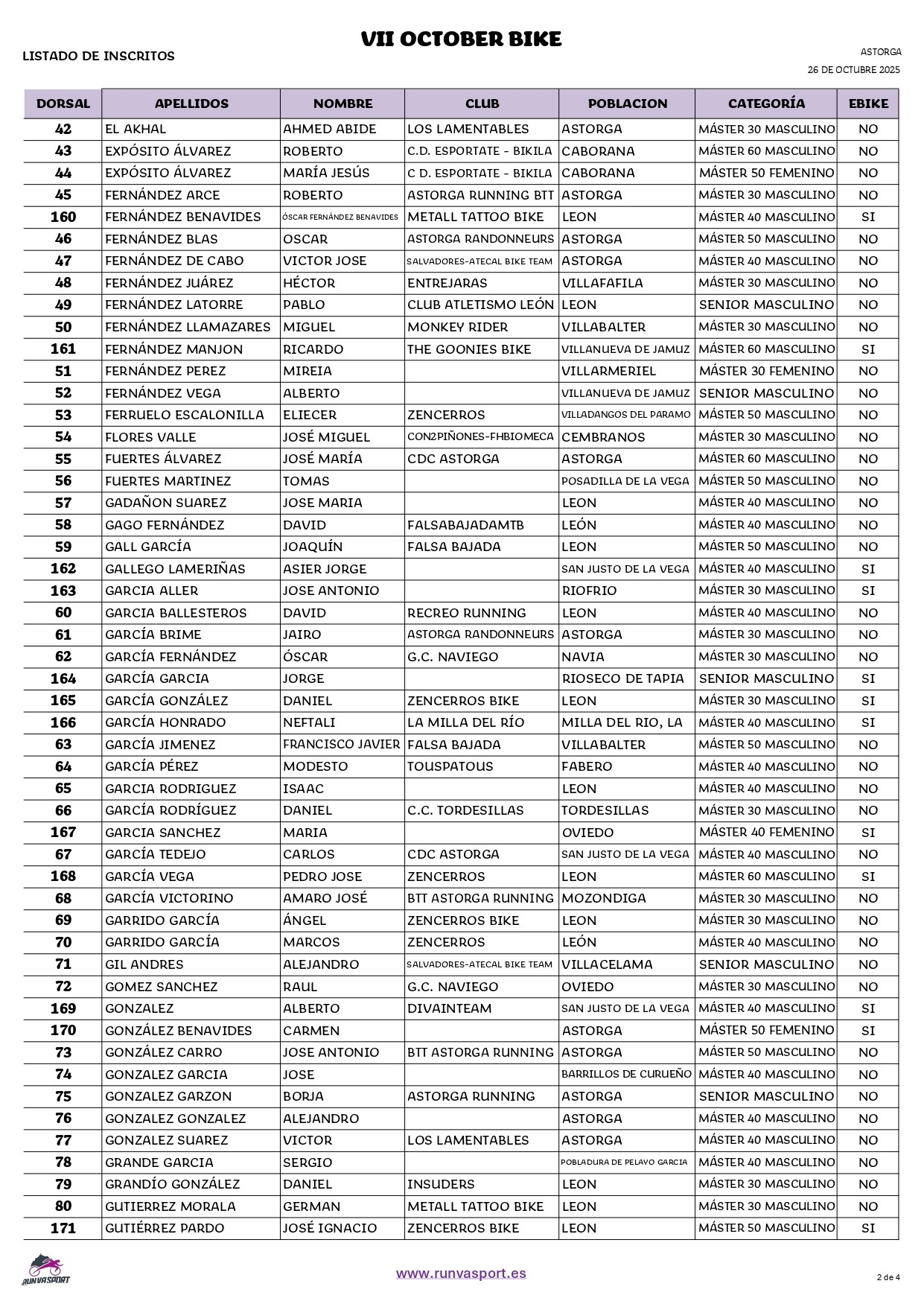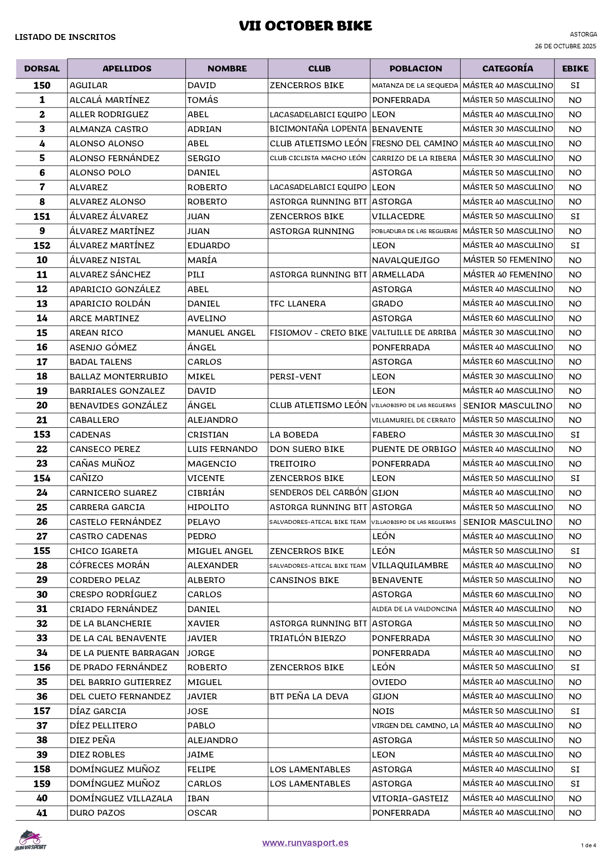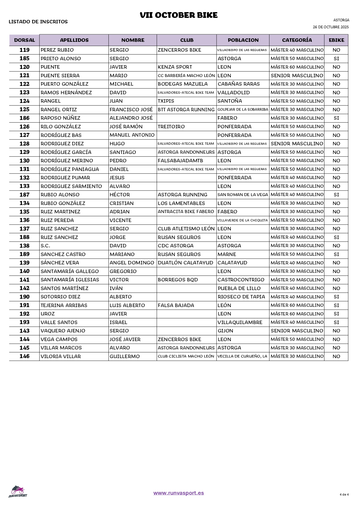 LISTADO DE INSCRITOS - VII OCTOBER BIKE