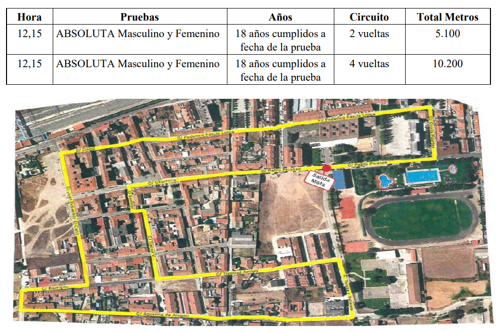 PRUEBAS, HORARIOS, DISTANCIAS, PLANO DEL CIRCUITO - XXII CARRERA POPULAR VENTA DE BAÑOS